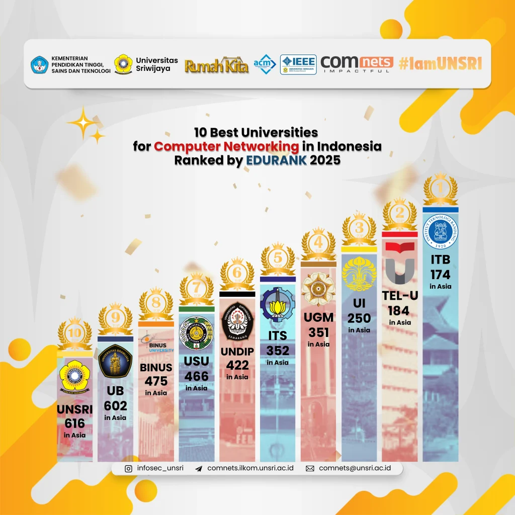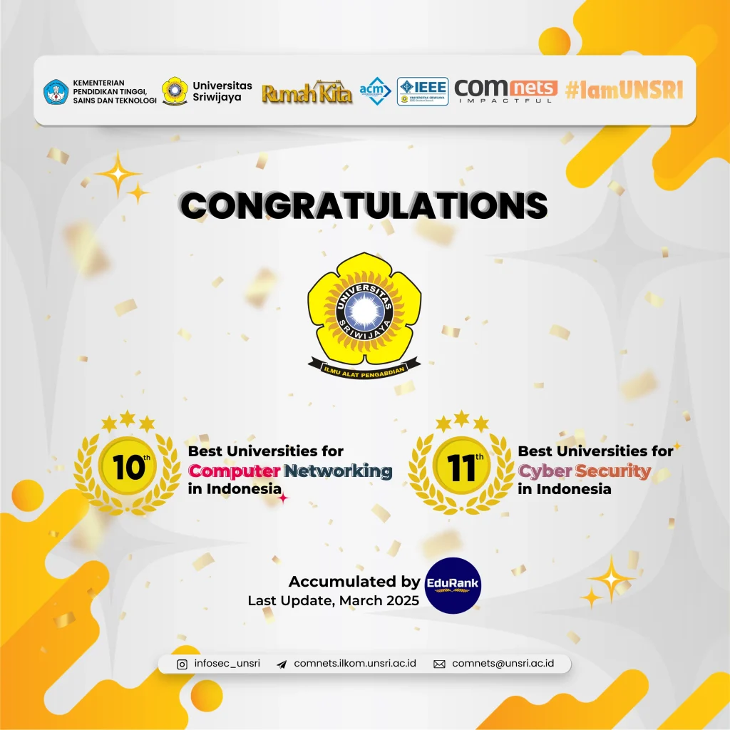 EduRank Rilis Peringkat Universitas: UNSRI Tembus Top 10 Computer Network dan Top 11 Cyber Security di Indonesia