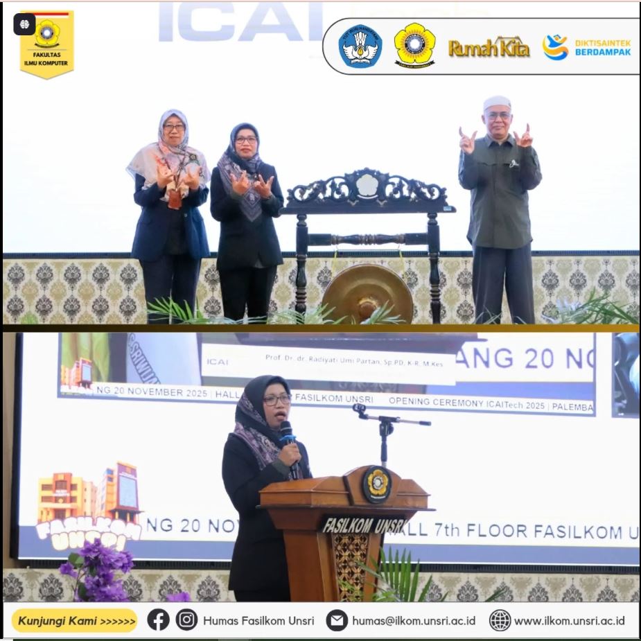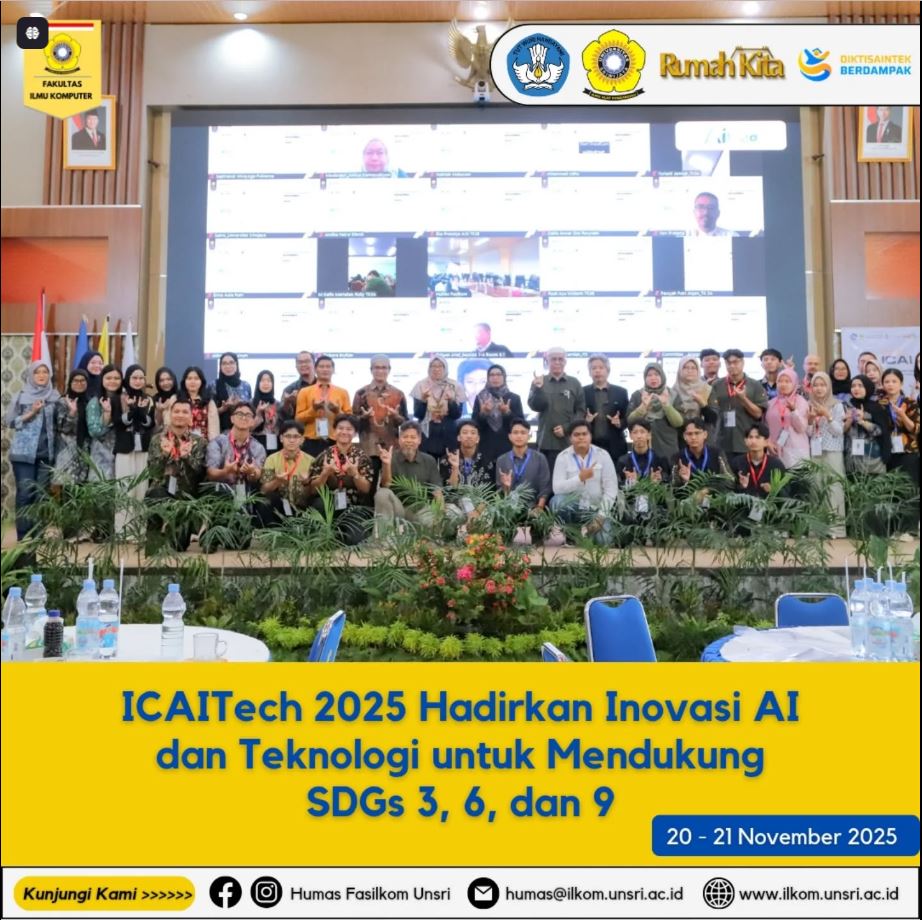 Fakultas Ilmu Komputer Universitas Sriwijaya secara resmi membuka International Conference on Artificial Intelligence and Technological Solutions (ICAITech 2025), forum internasional untuk berbagi riset dan inovasi terkini di bidang kecerdasan buatan serta pemanfaatan teknologi dalam mendukung Sustainable Development Goals (SDGs), khususnya SDG 3, 6, dan 9. ICAITech diselenggarakan pada 20-21 November 2025, di Jaidan Jauhari Hall, Fakultas Ilmu Komputer, Kampus Palembang.